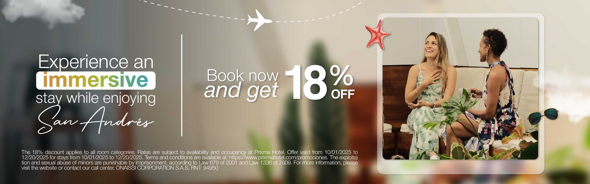 Experience the authenticity of San Andrés at the Prixma Hotel. Located on Via Aeropuerto (Av. Colón), just steps from the white sand beaches.
